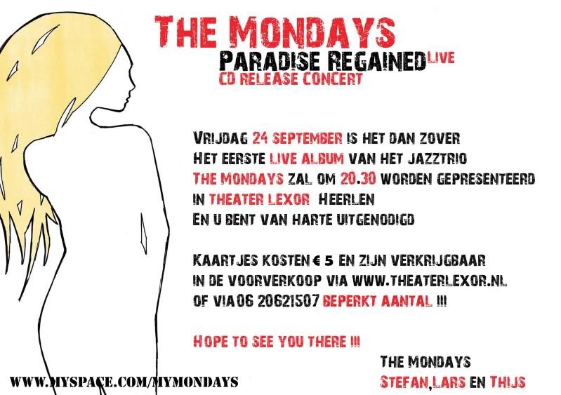 Op de achterkant van de hoes komt rechts van de lijst met nummers (die overigens in hetzelfde lettertype en die twee kleuren rood/zwart daar komen te staan) een zwevend eiland met een waterval te staan; het "Paradijs". Het boekje gaat gevuld worden met foto's van het optreden.